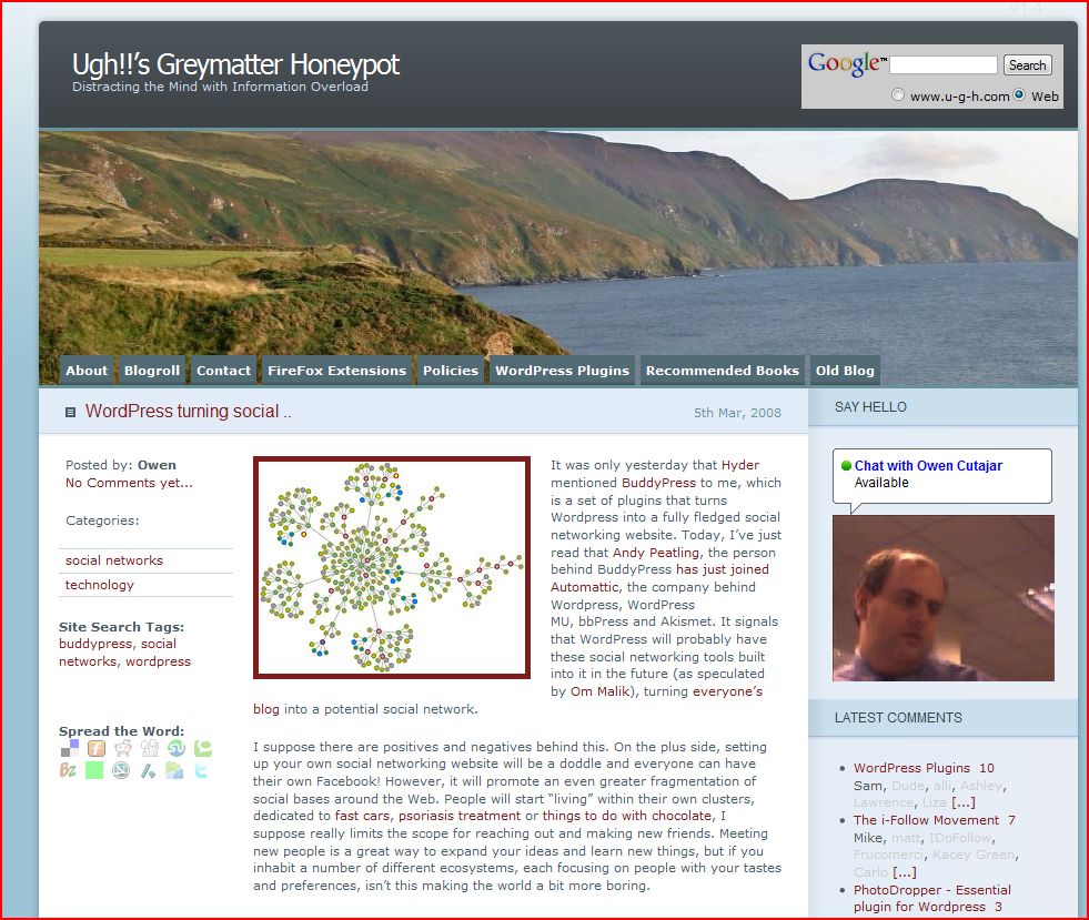 Most PDAs come bundled with a mobile browser so that their owners can use them to browse the web. I was lying in bed the other night playing with my XDA and decided to have a look at what my blog looked like. On a normal browser this is what I see: