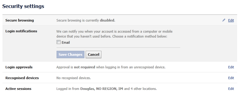 So, how can you keep an eye on your account. Well, if you click on Account in the top right-hand corner and pick Account Settings you’ll find a section where you can configure your account. Click on the Security menu and you’ll see a section like this: